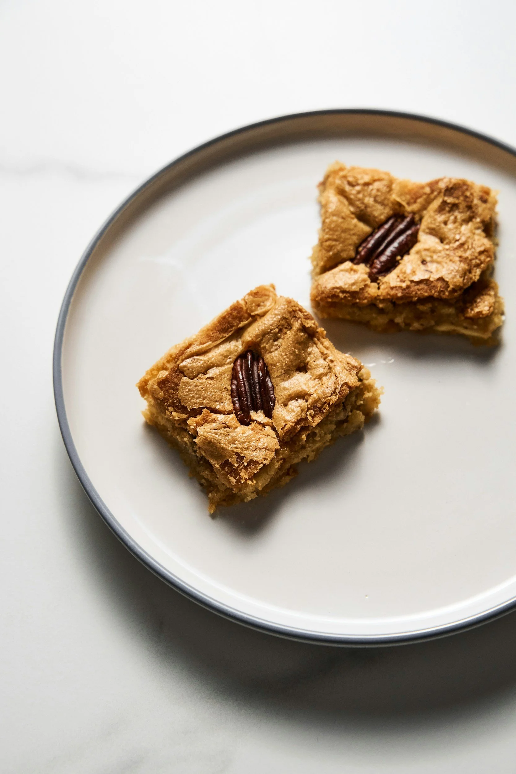 Bake this for 20-25 minutes or until the edges look set and a toothpick inserted in the middle comes out clean. Let this cool completely before removing the brownies from the pan.